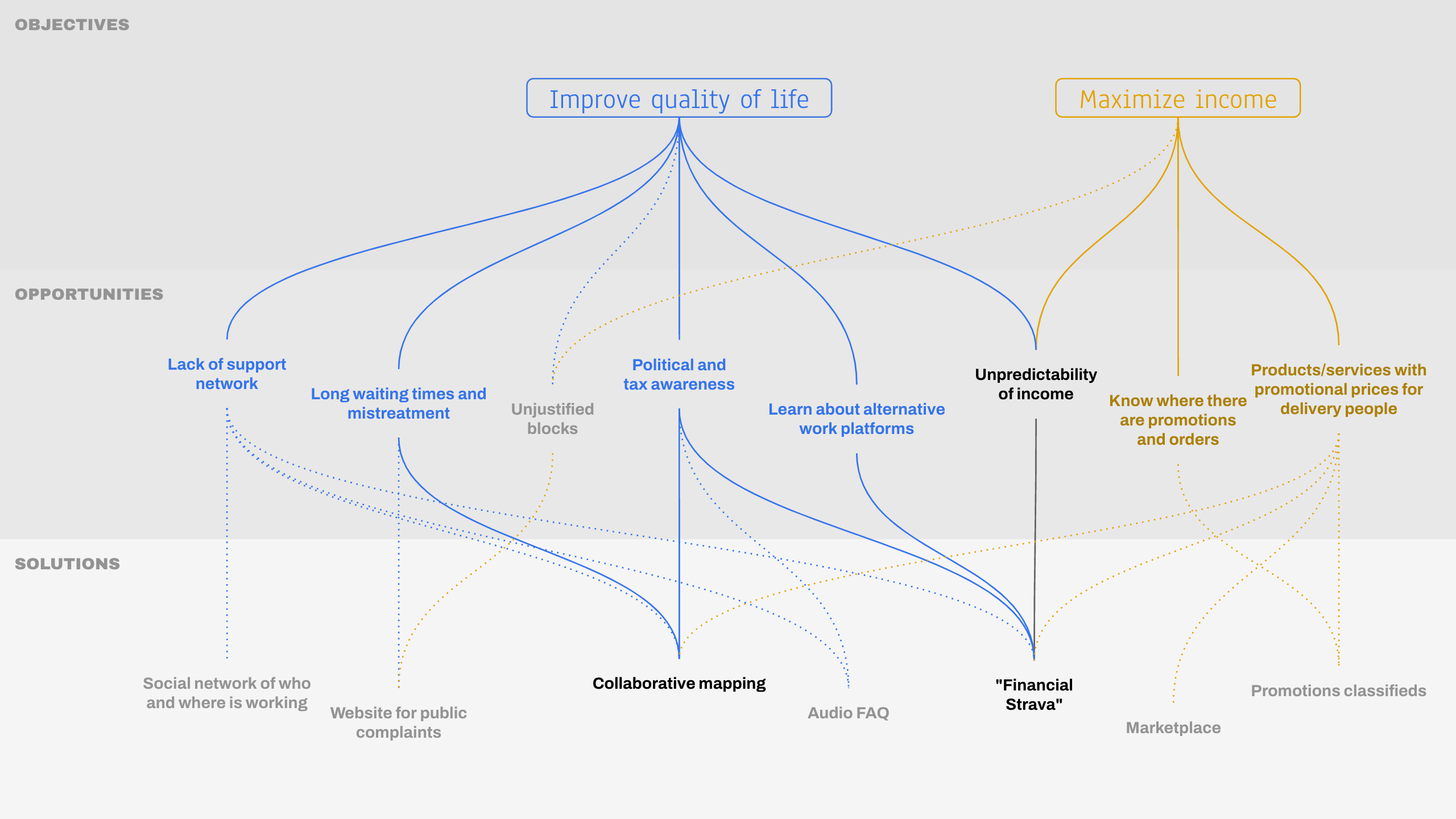 A highlight during this phase was our participation on the online workshop ‘Health and Workers’ Rights in Times of Digital Platforms’, a partnership with teachers and researchers from the highly influential Brazilian institutions Fundação Oswaldo Cruz (Fiocruz) and DIEESE and the UFRJ and UFF universities. This forum allowed us to deepen our understanding of the users and to expose our ideas to a wider audience.